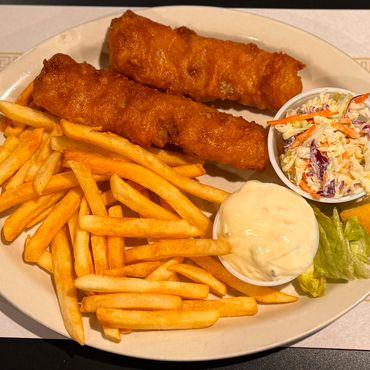 3 crispy tenders fried to a golden brown, served with fries & coleslaw.